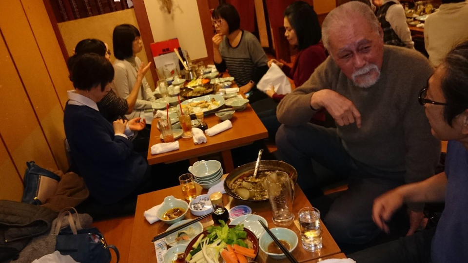 会は14時から17時まででしたが、やはりいつものことですがそんな短時間では思い出は語り尽くせぬ、先生ともども全メンバーで2次会に突入。
