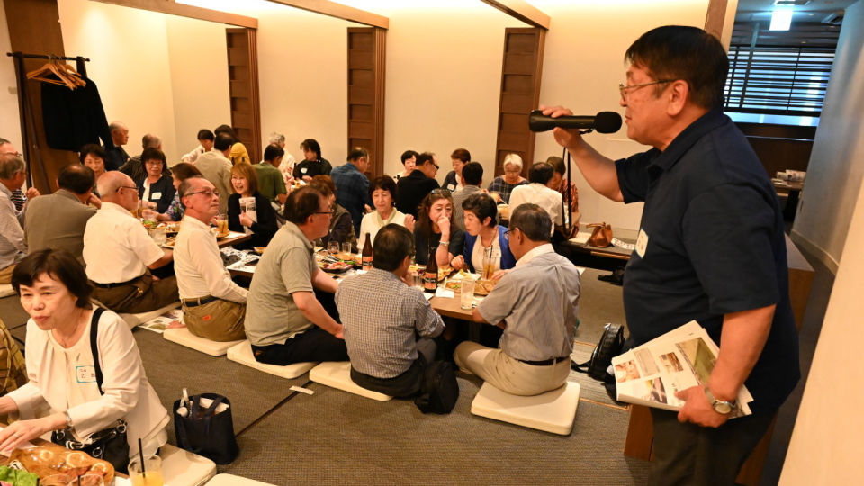 6時過ぎ、小岩高校同窓会からのお願いを副会長の吉澤君(7組)が説明しました。各テーブルで、かなり話しが弾んでいました。