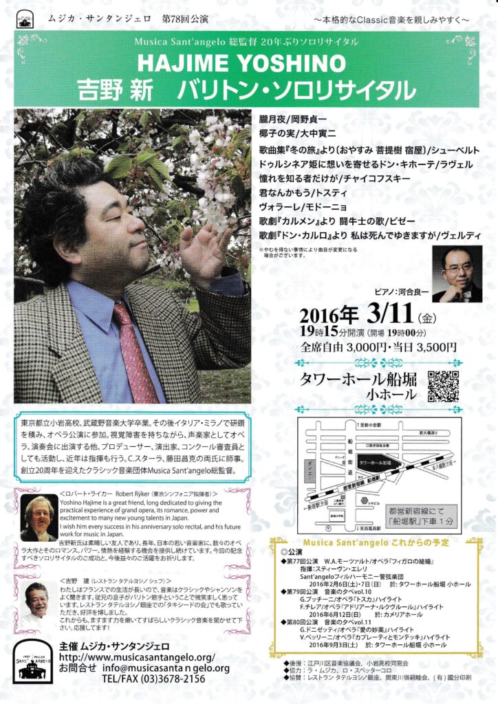 【イベント案内】 吉野 新 バリトン・ソロリサイタル