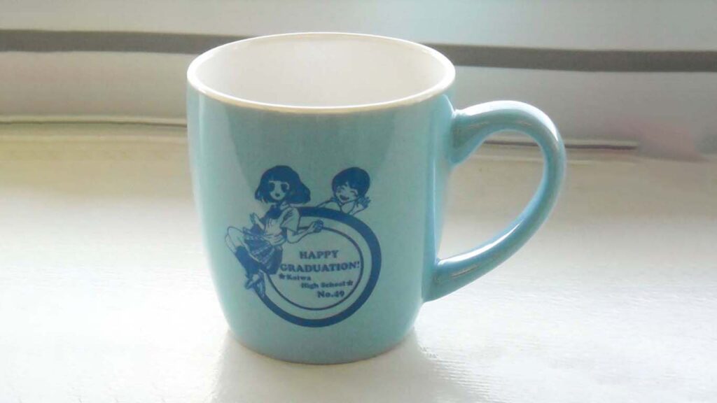 同様に、卒業される3年生に対しては『卒業記念マグカップ』(冒頭写真)を贈呈いたしました。3年4組福嶋菜緒さんによるデザインで、学年カラーの青い(昔からこいわみずいろと言われております)マグカップが3年生全員と担任先生らに贈呈されました。今年の49期生は、3名を除いたほぼ全員といえる大量の同窓会入会となりました。これから同窓会と長きにわたり繋がっていく象徴としての記念品は、各々の方に大切に愛されていくものと信じております。