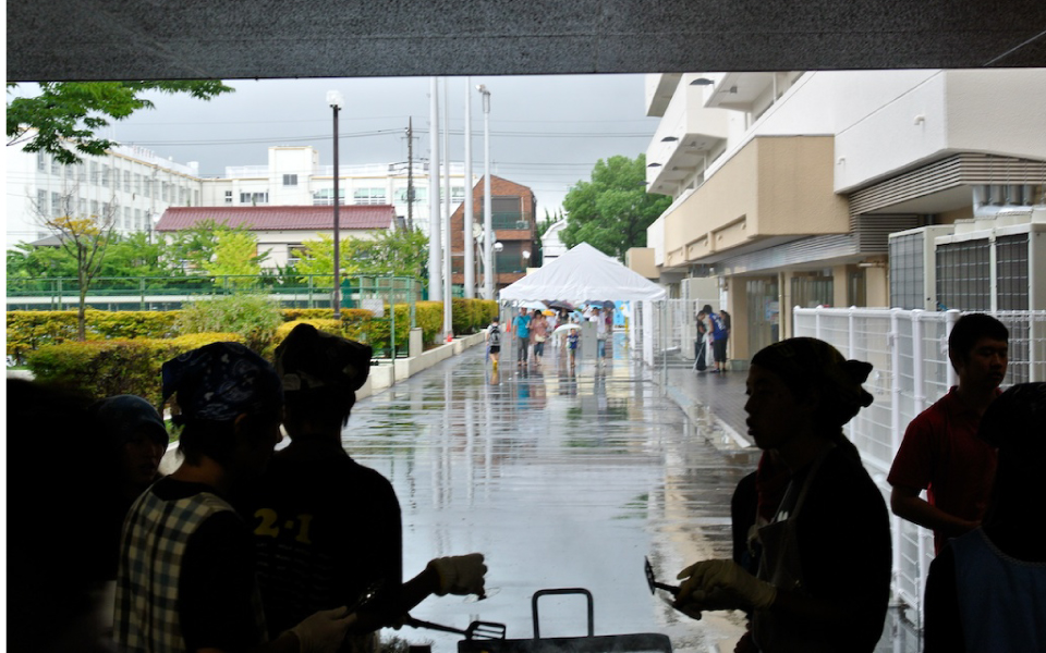 2日目には、あいにく台風が来襲し豪雨の中でのスタートとなり校庭での屋台が体育館脇に移り大変な人混みとなるなどしましたが、幸い午後には雨は止み、多くの来場者が訪れてくれて、屋台の食べ物は全てが完売となり、生徒達も嬉しそうにしていました。
