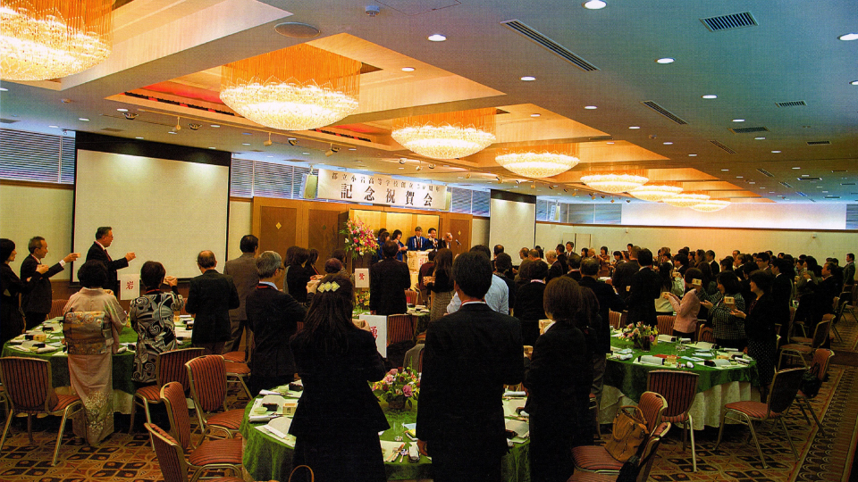 高校創立50周年記念祝賀会[写真] 2016 7/20 母校通信 周年行事 2016年7月20日 以下の写真は、2012年12月1日江戸川総合文化センターにて開催された「都立小岩高等学校創立50周年記念祝賀会」の模様です。 乾杯 コーラス 宴席 母校通信 周年行事 関連記事 小岩高校弓道部女子紫灘旗大会団体3位入賞達成! 2025年8月27日 弓道部女子関東大会出場おめでとう! 2024年11月16日 「嗚呼、我が岩高時代!!」記念誌頒布のお知らせ 2022年12月20日 学校創立60周年記念行事開催報告(3) 2022年12月12日 学校創立60周年記念行事開催報告(2) 2022年12月12日 学校創立60周年記念行事開催報告(1) 2022年12月12日 「嗚呼、我が岩高時代!」発行プロジェクト始動!! 2021年11月21日 60周年記念誌「嗚呼、我が岩高時代!」を発行します。 2021年8月31日