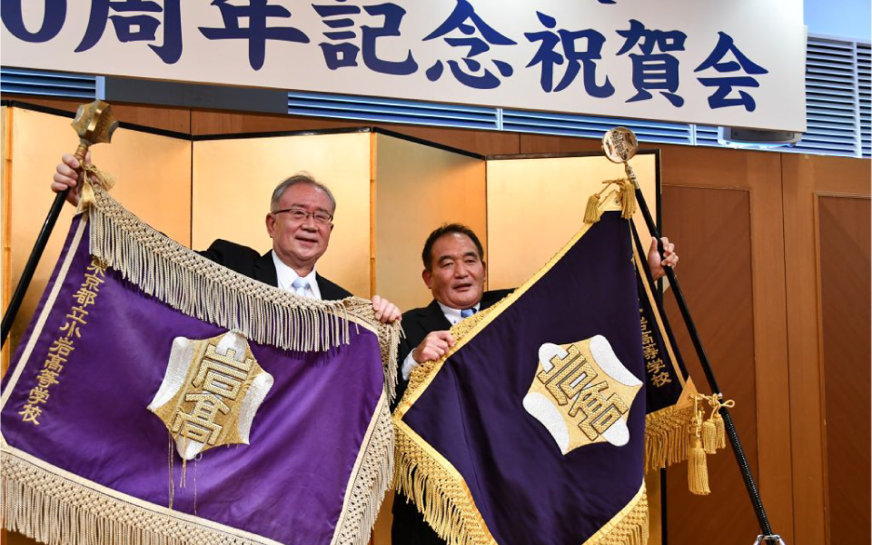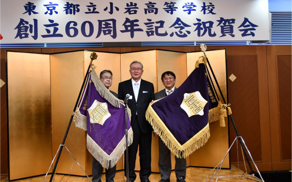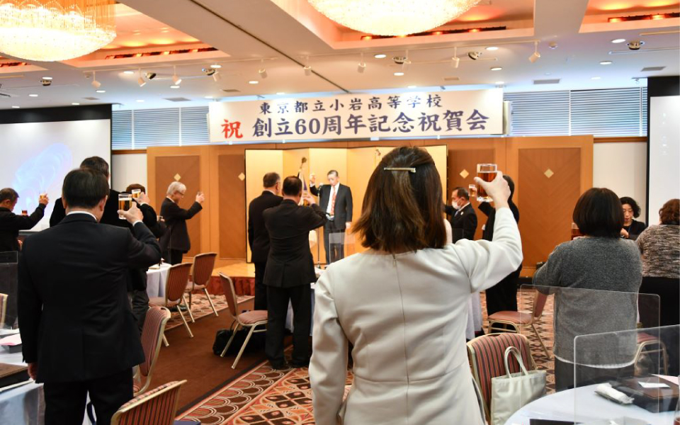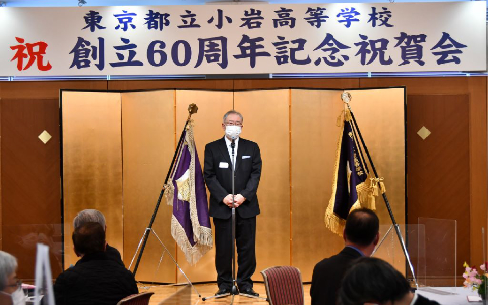 当初は120名規模の学校関係者も含めた祝賀会を予定していましたが、都教委の意向に準じて学校としての参加者は見送られました。長野校長には同窓会員そしてPTAのOBという立場での参加をいただき、閉会までの間をご一緒に過ごさせていただきました。